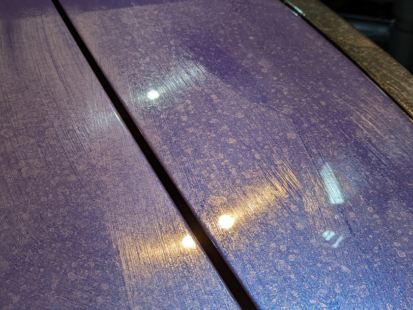 一見キレイに見えるお車ですが、シャンプー洗車で砂汚れを落とすと水アカが塗装面にびっしり付着しているのが分かります。普段水道水を使用して洗車していると、どうしても水アカが付着しますが洗剤で除去することが可能です。
