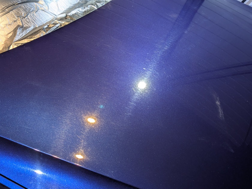 こちらのお客様は、当店のSNSをご覧いただき徹底的に研磨して愛車をキレイにしたい!とご来店くださいました。お車の状態を確認すると、全体的に洗車キズが付いておりましたが十分キレイにすることが可能な状態でした。欧州車は塗装面が非常に硬いため、ハード研磨+ガラスコーティングの提案をさせていただきご入庫となりました。